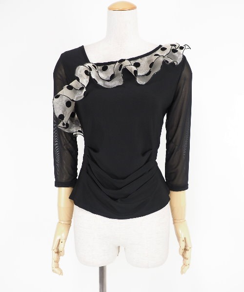 シャンパンゴールドのオーガンジーにドットのフロッキープリントが可愛く、フレアもたっぷりで踊った時の広がり方も綺麗です♪