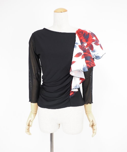 プリント梨地切り替えロングスカート 白地花柄 【社交ダンス 衣装 スカート】