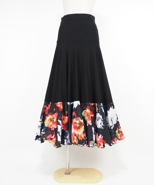 レイヤード梨地カットソー ブラック×白地花柄 【社交ダンス 衣装 トップス】