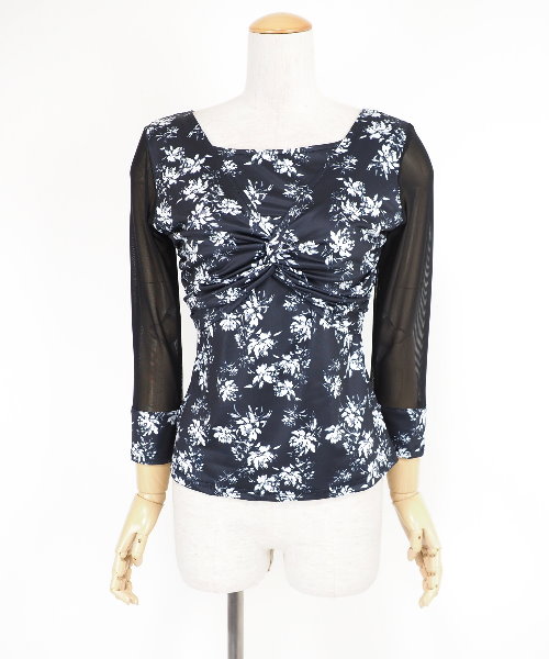 2wayバックルロングフレアスカート ブラック花柄 【社交ダンス 衣装 スカート】