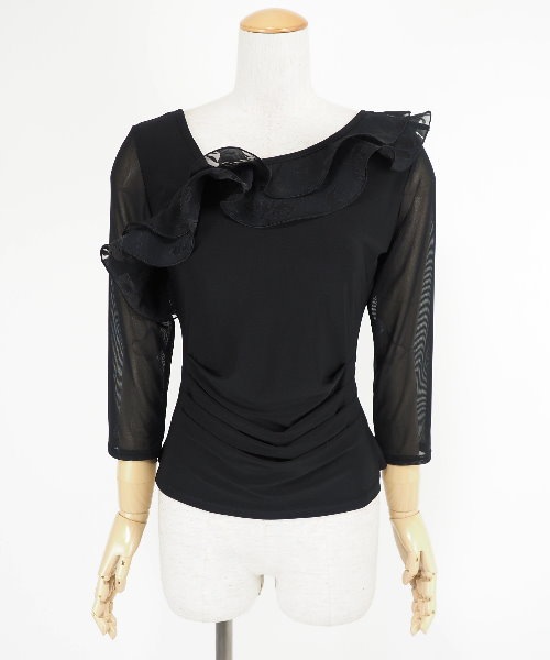 ジャガードオーガンジーを使用した、3段フリルのフレアスカート。